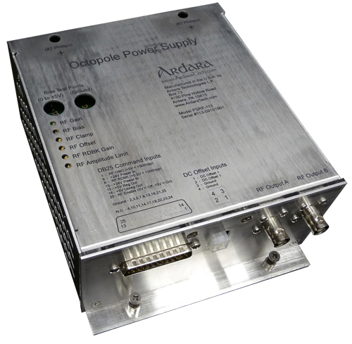 Currently numbering more than a dozen employees, Ardara Technologies staff is dedicated to continuous improvements of our designs with an emphasis on customization to support our customers’ diverse requirements. For example, our RF power supply has been modified to drive frequencies below 100 kHz for high mass quadrupole applications, to 5 MHz for high transmission RF-only ion guides. Most of the products we ship are customized in some way at our manufacturing site to meet a customer’s specific needs.